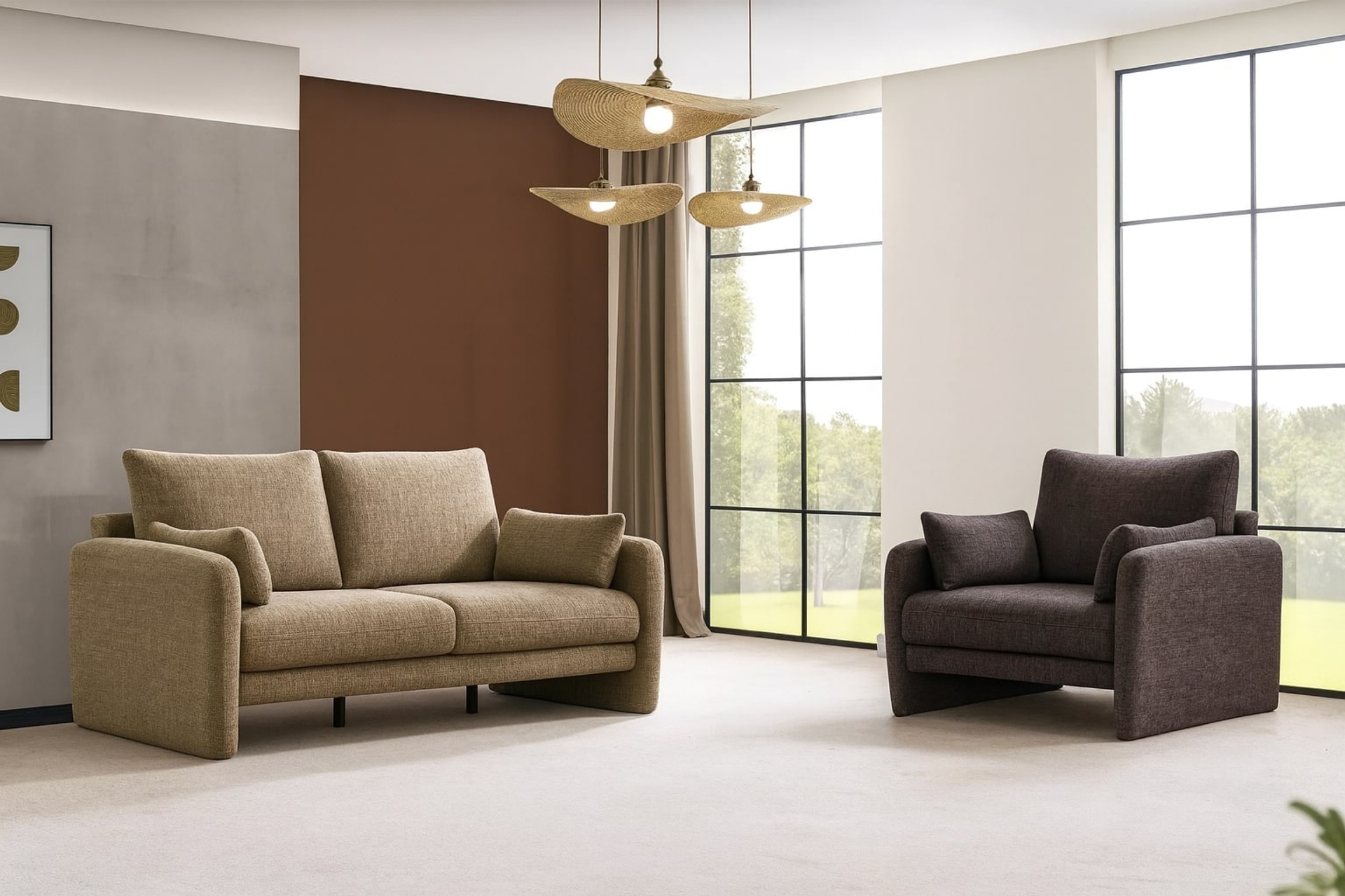 Willow Koltuk Takımı, zarif tasarımı ve yüksek kaliteli malzemeleriyle öne çıkar. Silinebilir kumaşı ve konforlu oturumu, günlük kullanımda pratiklik sağlar. Açık kahverengi rengi, her türlü iç mekânla uyumlu bir sıcaklık yaratırken, kolları ve ayaklarının bir bütün olarak tasarlanması, şıklığını pekiştirir.