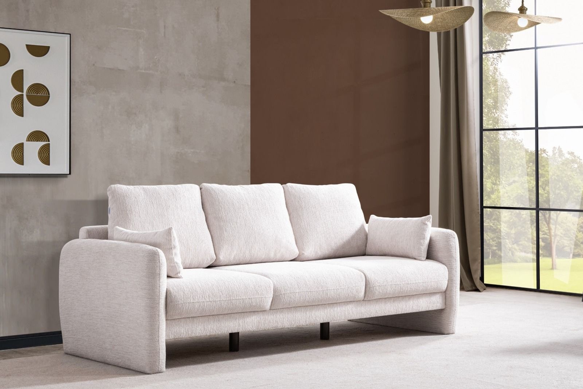 Willow Üçlü Koltuk, zarif tasarımı ve yüksek kaliteli malzemeleriyle dikkat çeker. Silinebilir kumaşı ve konforlu oturumu, günlük kullanımda pratiklik sunar. Kırık beyaz rengi, her türlü iç mekânla uyumlu bir sıcaklık yaratırken, kolları ve ayaklarının bir bütün olarak tasarlanması, şıklığını tamamlar.