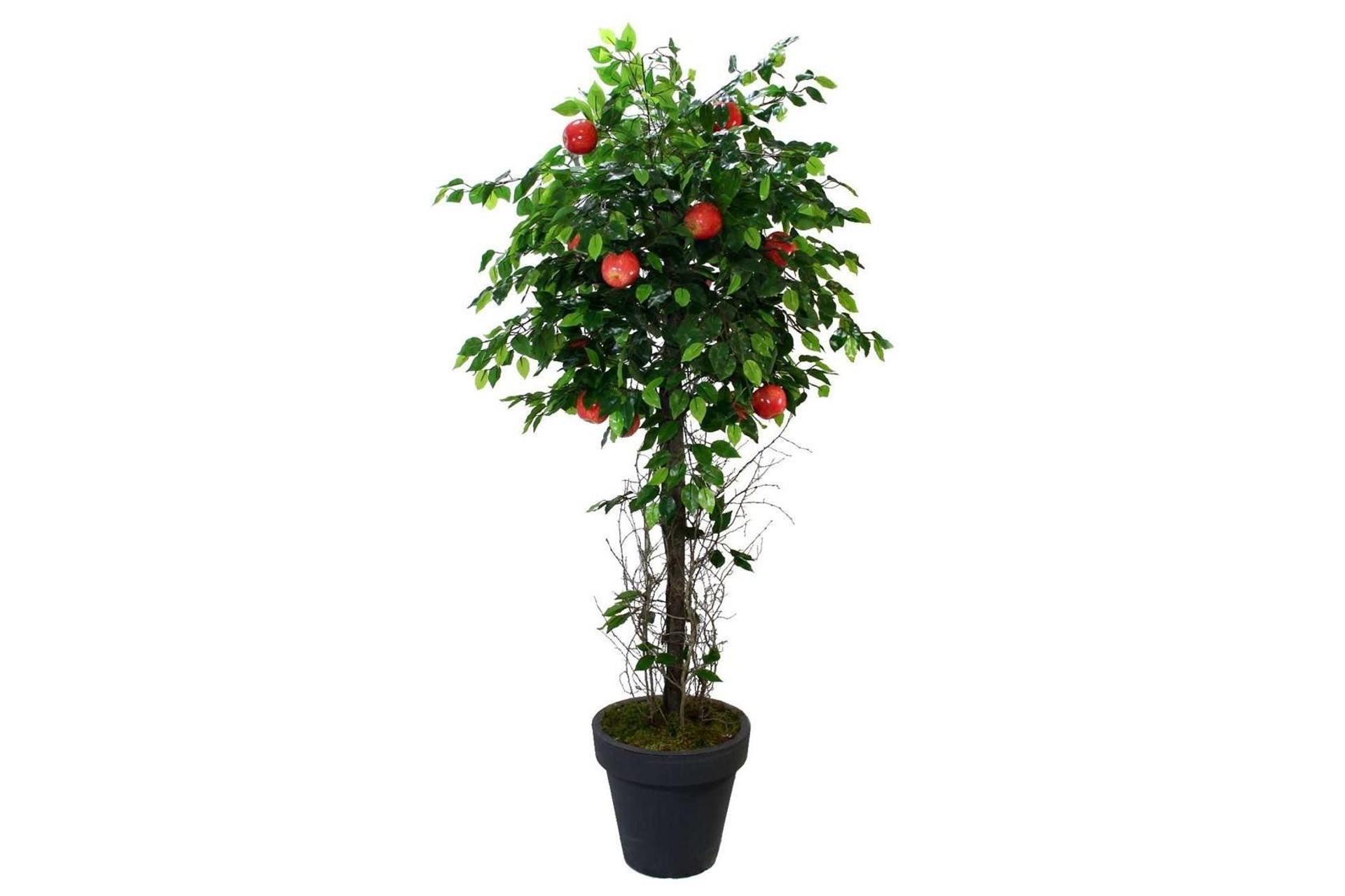 Ek BilgilerGerçekçi yaprakları ve kırmızı elma detaylarıyla evinize, ofisinize veya işletmenize doğal ve canlı bir hava katar. Bakım gerektirmez; sulama, budama gibi işlemlere ihtiyaç duymaz. Şık saksısı sayesinde istediğiniz köşeye kolayca yerleştirilebilir. Özellikler: • Yükseklik: 175 cm • Renk: Yeşil / Kırmızı • Malzeme: Plastik • Kullanım: İç & dış mekân • Saksılı, bakım gerektirmez