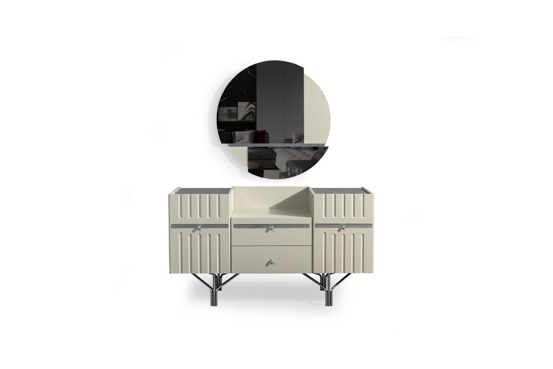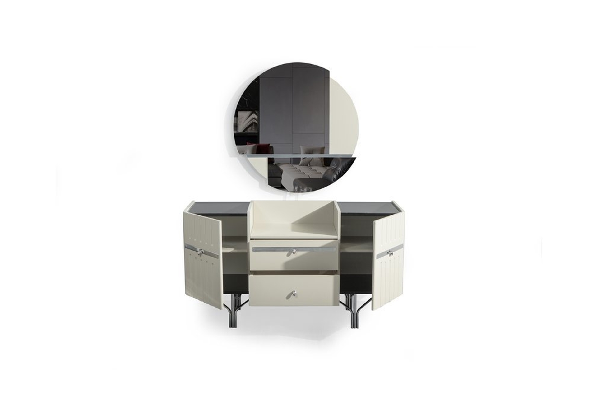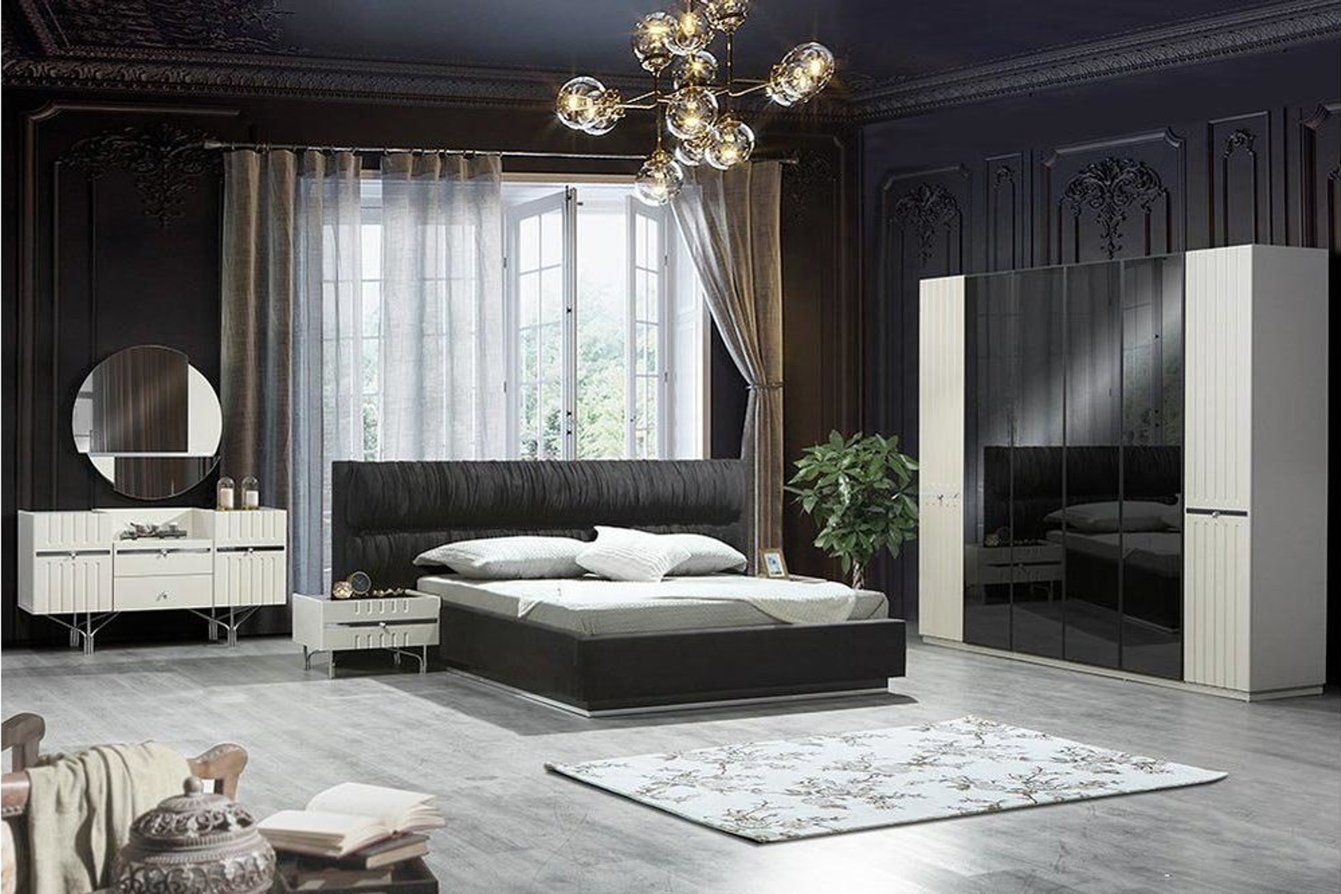 Takım İçeriği1 adet gardırop, 1 adet bazasız karyola, 1 adet şifonyer, 1 adet şifonyer aynası ve 2 komodinden oluşmaktadır.