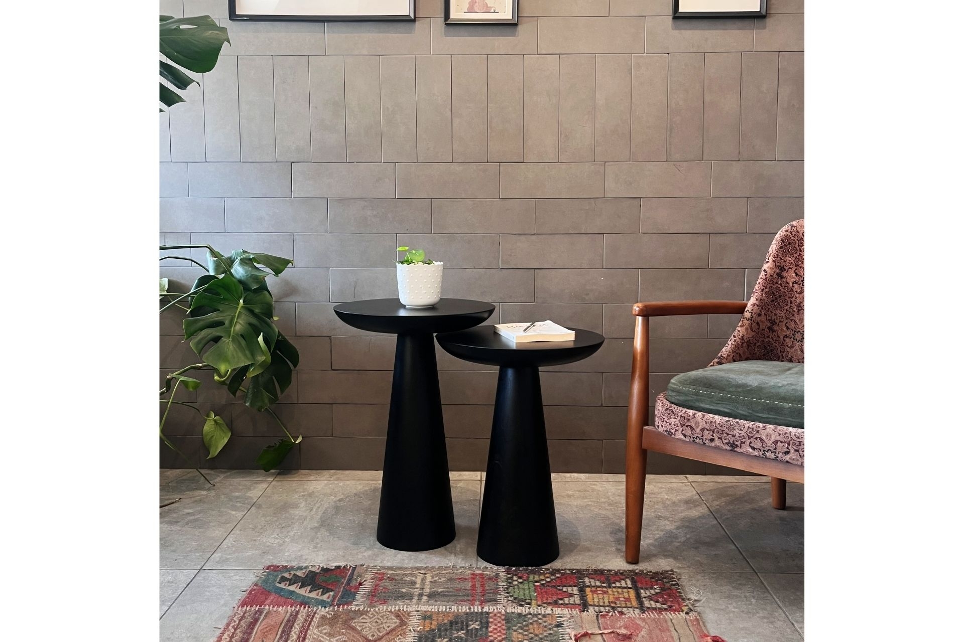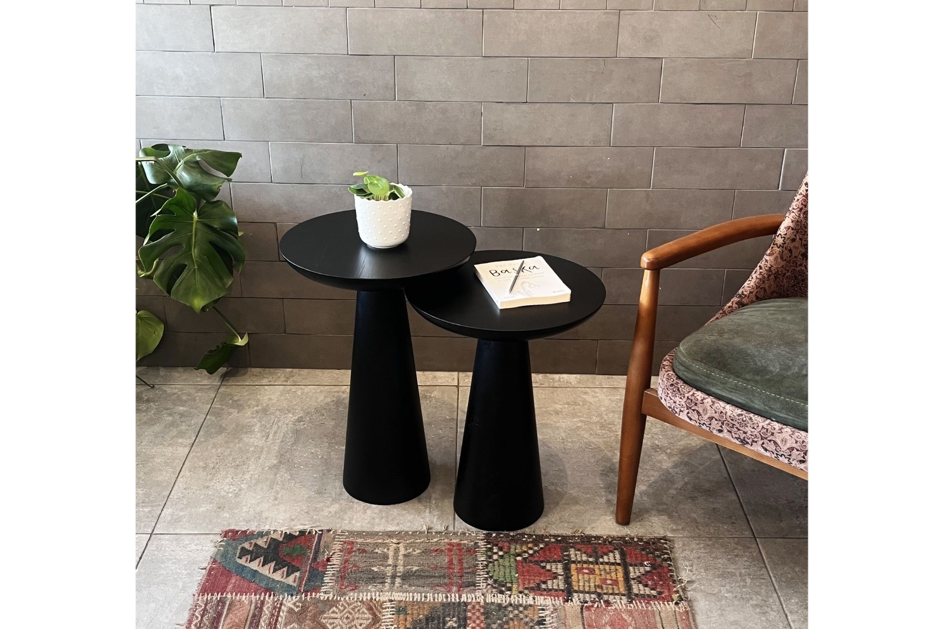 2'li Zigon Mantar Sehpa Mushroom | Masif Ahşap Modern Yan Sehpa Takımı (Orta) 37 cm 37 cm 50 cm