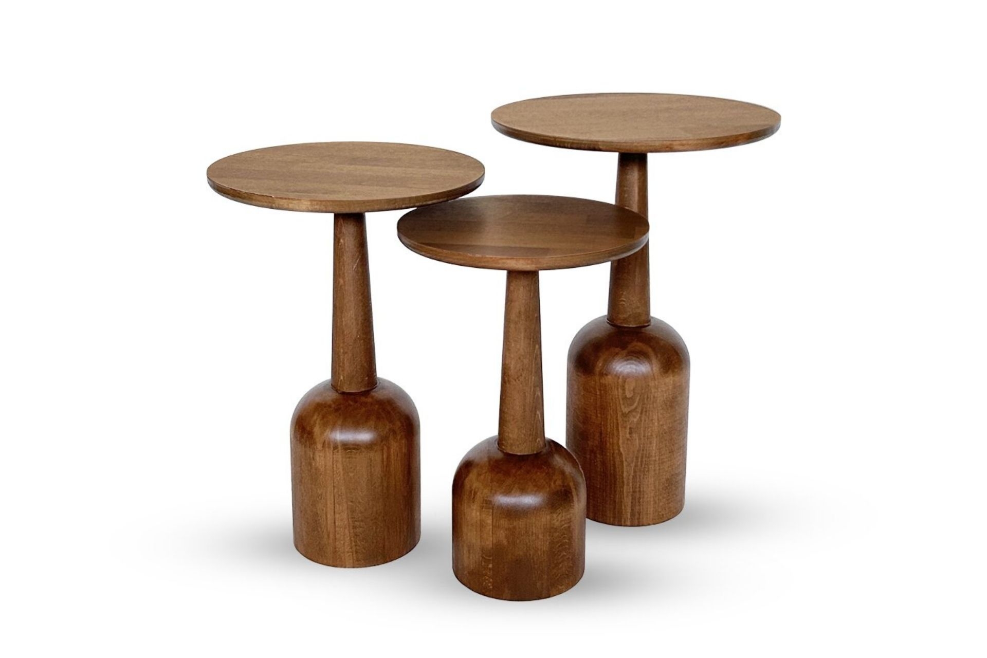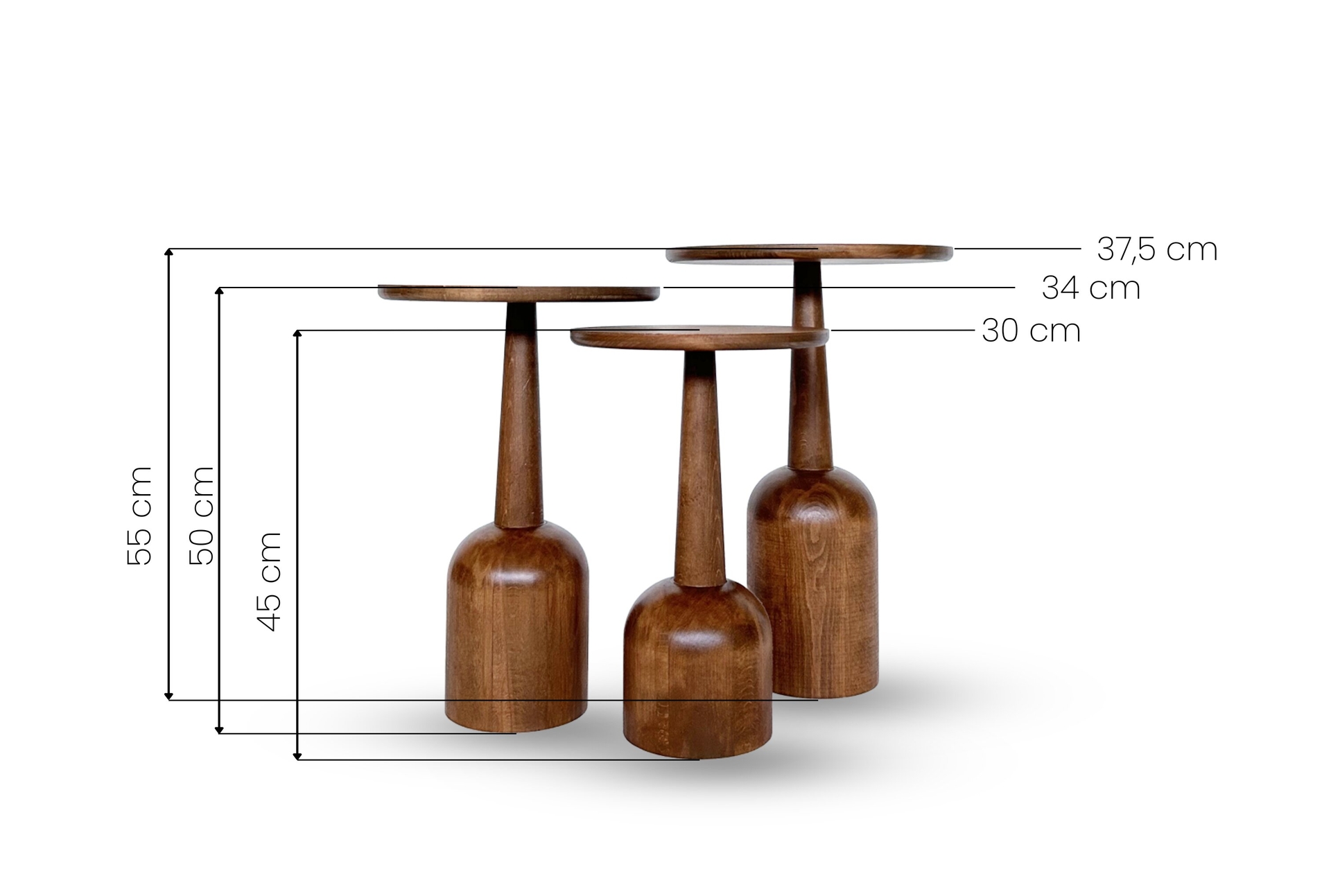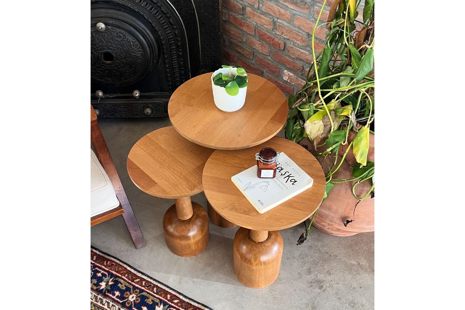 3'lü Zigon Mantar Sehpa Terra| Masif Ahşap Modern Yan Sehpa Takımı (Küçük) 30 cm 30 cm 45 cm