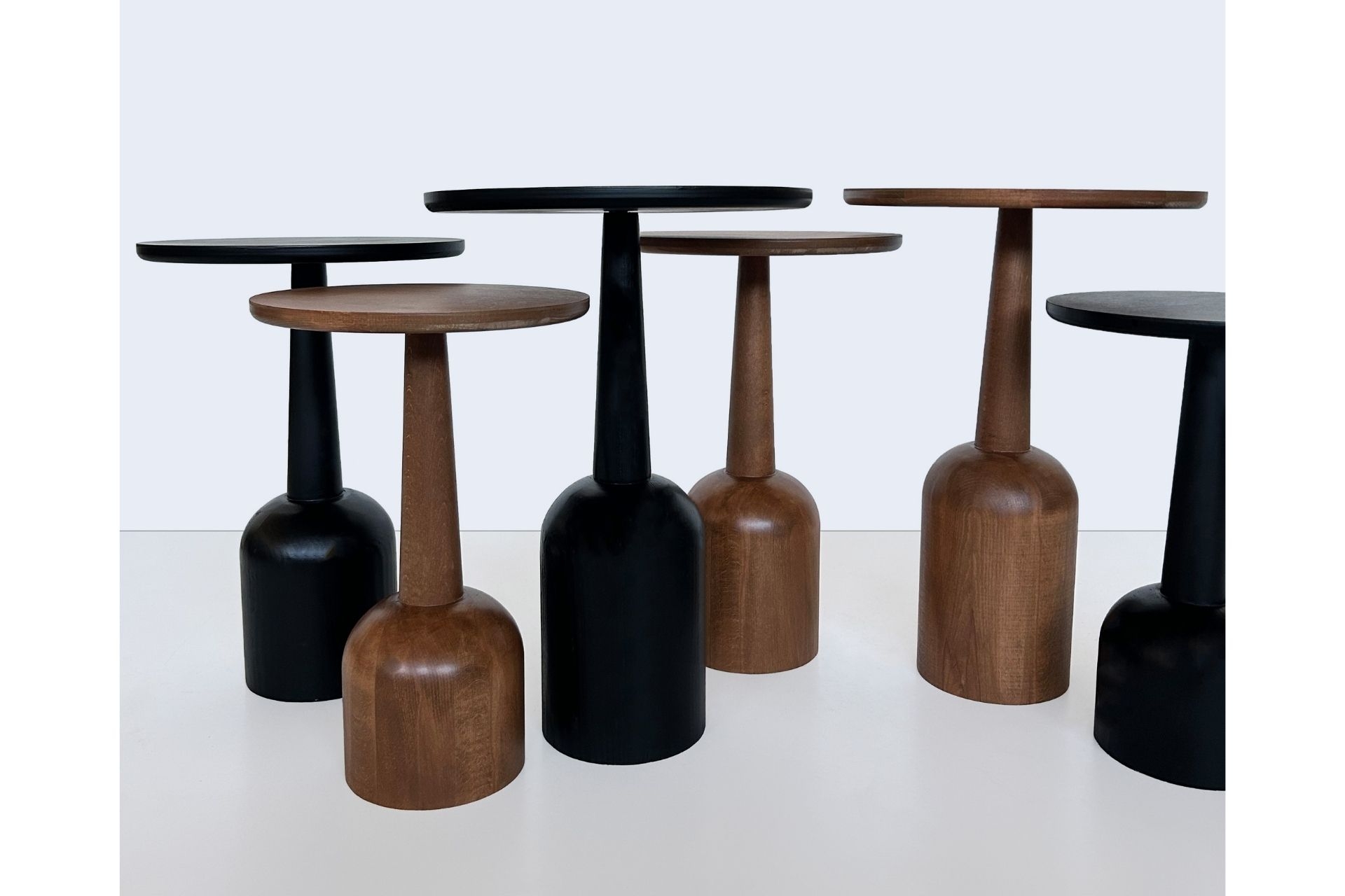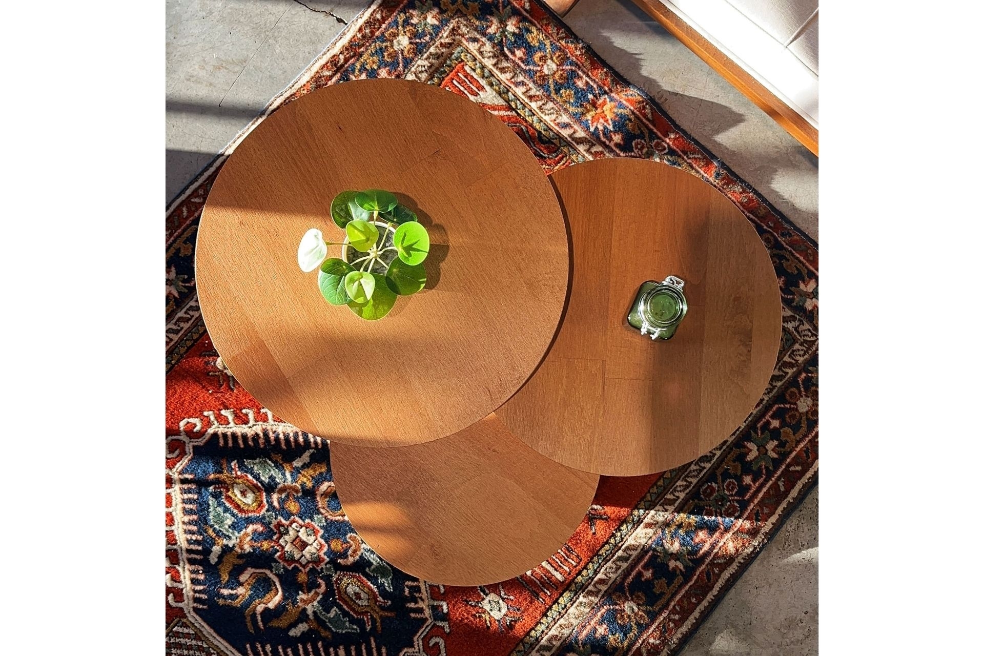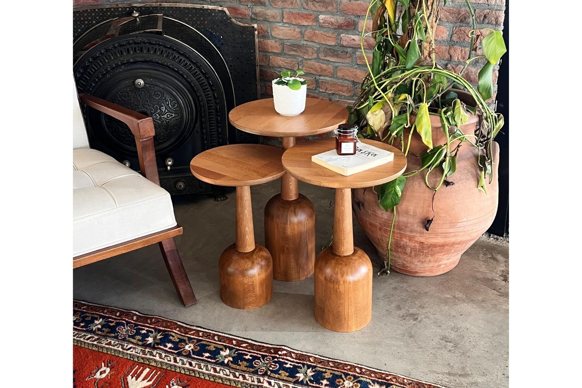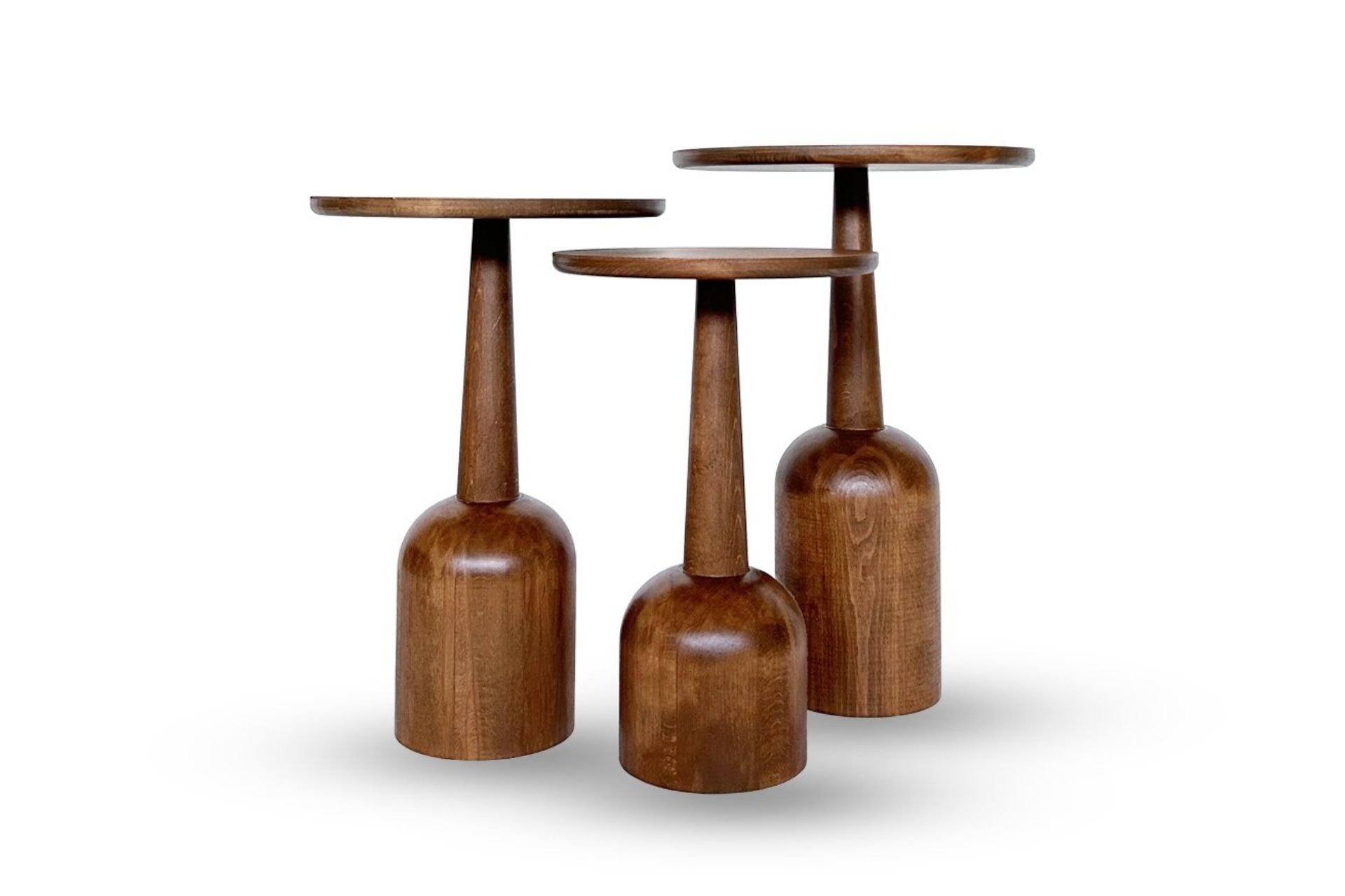 3'lü Zigon Mantar Sehpa Terra| Masif Ahşap Modern Yan Sehpa Takımı (Küçük) 30 cm 30 cm 45 cm
